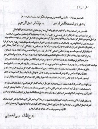 پاسخ امام خمینی به تلگراف اصناف و اهالی همدان