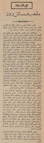 «مذهب و مسائل روز» عنوان مقالهای در روزنامه اطلاعات، در شماره روز پانزدهم اسفند 1341 بود که به مسایل سیاسی و مذهبی پرداخته و به طور ضمنی بدون آنکه به رویدادهای چند ماه گذشته از این تاریخ بپردازد حوزه سیاست و مذهب را جدا از هم و تفکیک شده دانسته بود. نویسنده مقاله، «شکاف مابین محافل روحانی و محافل سیاسی» را نتیجه تحولات روز دانسته و مسکوت گذاشتن آنرا جزو عقدههایی برشمرده بود که باید ریشهکن شود. آنگاه سمتوسوی سخن را به مداخله روحانیون در امور کشور و دولتی کشانده، آن را ناروا خوانده بود!