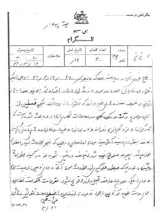 در تهران هم از روز 15 بازار بسته است ولى از روز جارى تدريجا باز مىشود با تشكيل كميسيون امنيت پيشبينىهاى لازم را از نظر امنيت شهر به عمل آوريد وقتى مردم مطمئن شدند كه امنيت برقرار است خودبهخود به كسب و كار مشغول خواهند شد ولى مأمورين انتظامى و سازمانهاى انتظامى بايستى با تهيه طرحهاى دقيق كاملاً مراقب بوده در موقع بروز حادثه غافلگير نشوند از ابتدا ابتكار عمل را در دست بگيرند بديهى است براى اين كار كسب اطلاعات دقيق و در جريان گذاردن سازمانهاى انتظامى فوقالعاده حائز اهميت است و اگر با تمام اين پيشبينىها احتمال بروز حوادث ناگوارى برود آن وقت اقدامات ديگرى به عمل خواهد آمد كه فرماندارى نظامى هم بخشى از آنهاست. 20 /3 /42