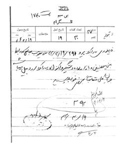 خيلى فورى ساواك پيرو 291 ـ 19 /3 /42 ملايعقوب عباسى كه رابط بين متحصنين و بازار بوده دستگير و اكنون در ساواك اردبيل مىباشد جريان كل متعاقبا به عرض خواهد رسيد.