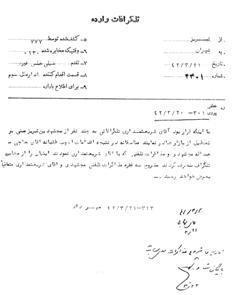 انصراف آیت الله شریعتمداری از مخابره تلگراف به روحانیون تبریز و دعوت برای خاتمه دادن به اعتصاب بازار 21/3/1342