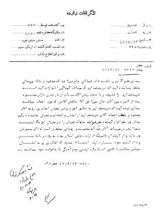 به منظور عقيم گذاردن نقشههاى شيطانى حاج ميرزا عبداله مجتهدى مالك و روحانى متنفذ و نماينده آيتاللّه شريعتمدارى كه به وسايل گوناگون اظهاراتآيتاللّه شريعتمدارى را تحريف و با جعل و نشر اكاذيب مانع از باز شدن بازار مىشود بعدازظهر ديروز آقاى حاج ميرزاعلى آقا بالغور آغاجى كه مورد اعتماد مىباشد به منظور توجه آيتاللّه شريعتمدارى به حقايق امور و روشن نمودن اعمال بىرويه آقاى مجتهدى و جلب اعتماد آقاى شريعتمدارى از ايشان و انتخاب و معرفى نماينده ديگرى به جاى وى به قم اعزام گرديده مقرر فرمايند ساواك تهران را در جريان امر بگذارند ضمنا به عرض مىرساند آقاى عبداله مجتهدى روحانى متنفذى است كه اكثر منسوبان وى مالك و از كارمندان عالىرتبه ادارات دولتى استان بوده به ويژه در بانك ملى و دادگسترى نفوذ بسيار دارند استنباط مىشود كه اعمال بىرويه ايشان به منظور مخالفت با قانون اصلاحات ارضى و همآهنگى با خانواده خود مىباشد.