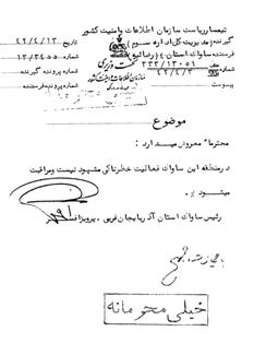 فرستنده : ساواك استان 4 (رضائيه) شماره : 3455 /13
