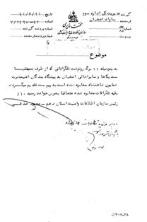 فرستنده : ساواك اصفهان شماره : 42ـ 1465 /7