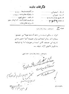 اجازه آزادی زندانیان وقایع 15 خرداد در اصفهان 27/3/1342