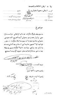 دستور اداره کل سوم ساواک به ساواک اصفهان مبنی بر شناسایی افرادی که از خوانسار به امام خمینی تلگرام صادر کرده بودند. 23/5/1342