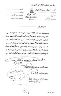 دستور اداره کل سوم ساواک به ساواک اصفهان مبنی بر شناسایی افرادی که از خمین و دستجرد تلگرامی مبنی بر درخواست آزادی امام صادر کرده بودند. 23/5/1342