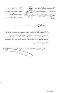 با اعاده عين تلگراف مخابره شده از خمينى به استحضار مىرساند كه خمين در منطقه استحفاظى ساواك قم مىباشد در مورد عريضه تنظيمى در دستگرد خيار دستور لازم صادر شده نتيجه اعلام خواهد شد.