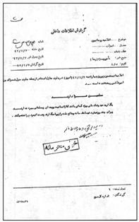 اعلاميهاى بمضمون زير روز چهارشنبه 7 /1 /42 (امروز) در جلوى منازل اشخاص از جمله جلوى منازل شمسالدين امير علائى1 ريخته شده است.