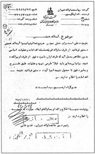 بفرموده مقرر است براى خنثى نمودن هر نوع فعاليتهاى سوء آيتاله خمينى دستور فرمائيد از طرف ساواك قم يك سلسله اقدامات و عمليات اساسى بدون تظاهر بعمل آيد كه طرفداران نامبرده فوق از طرف او پراكنده شوند براى اين منظور بايد قبلاً طرحى تهيه و عمليات طبق طرح و بطور دقيق تا حصول نتيجه اجرا گردد دستور فرمائيد نتيجه اقدامات را اعلام دارند.