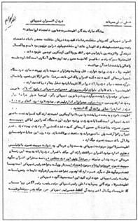 اعليحضرتا. سپهبد نصيرى نالايق كار را بجائى كشانده كه زير دستان او مردم را غارت مىكنند و كلانتريها را بمزايده گذاردهاند و اين همه چشم پوشى بجائى كشيده كه روزى در دستگاه شهربانى انقلاب خواهد شد و اين افسرى كه انقدر نالايق است كه جرات ندارد جلو دزدى و اعمال همسر ننگين خود را در جلو انظار عمومى بگيرد چگونه ميتواند خدمت كند اين افسر نالايق و بى سواد حتى خانه خودش را دزدان سرقت كردند و دستور داد افشاء نشود اين است سرنوشت مردم بدبخت و بيچاره و رعيت شاهنشاه ايران.