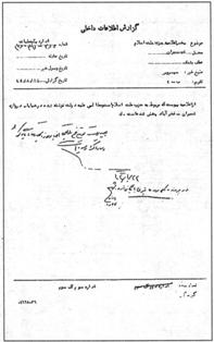 از اعلاميه پيوست كه مربوط به حزب ملت اسلام1 است و مطالبى عليه دولت نوشته شده در خيابان دروازه شميران ـ فخر آباد پخش شده است.