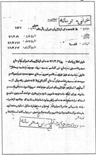 طبق اطلاع واصله روز 9 /3 /42 عدهاى از بازاريهاى تهران بنام حاج سيد رضا حسينى ـ حاج نقى كلباسى ـ سيد شريف موسوى ـ مشهدى مختار عنايتى ـ مشهدى عزيز عزيزى ـ قاسم نصيرى ـ حاج محمود محمودى ـ مير قاسم مير محمدى ـ سيد رضا حسينيان ـ حاج آقا ونائى بملاقات خمينى رفته و يكى از آنها بوى اظهار نموده بازاريهاى تهران ميخواهند در روز عاشورا دستجاتى بقم بياورند و براى اينكه جلب توجه مامورين نشود بطور متفرق خواهند آمد و چون شايع است كه دولت ميخواهد عدهاى را بقم بياورد شما مواظب باشيد كه چنانچه از طرف دولت و شهربانى عناصر لات و اوباش بعنوان دسته بطرف منازل شما و شريعتمدارى بفرستند مراقبت كنيد و ما نيز حاضريم مراقبت نماييم. خمينى در جواب گفته است افتخار ميكنيم مانند سيد الشهداء روز عاشورا كشته شده و بچههاى ما را اسير كنند در عوض اسم ما هميشه باقى است ما از حالا مثل حضرت حسين اعلام ميكنيم هر كه با ماست بطرف ما بيايد هر كه با ما نيست بسمت لشگر يزيد برود و يكى از كسانيكه روز عاشورا بايد در راه حسين كشته شود خمينى است بايد روز عاشورا را در قم كربلاى حسين نامگذارى كرد من ميدانم كه اين عمليات از طرف شهربانى و سازمان امنيت و سازمانهاى پست ارتش ميباشد من نخواهم گذاشت هر كارى رئيس شهربانى بخواهد انجام دهد. اينها را شهربانى بقم ميطلبد. دستور ميدهم اينهارا قطعه قطعه كنند. اكنون در شهر شايع است طرفداران خمينى قصد دارند براى جلب مردم بطرف او از يك تومان ببالا بحساب او پول جمع آورى نمايند و روى اين اصل صبح 12 /3 /42 عدهاى در حدود سه هزار نفر جمعيت از قراء جمكران و سراجه و تهران بقم آمده بنام عزادارى بمنزل خمينى رفتهاند.