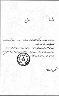 و نيز برابر گزارش مامور شهربانى نامبرده در تاريخ 13 /3 /42 اظهار داشته كه جوانان بايستى از محاكمه شدن باكى نداشته باشند و چون دين اسلام احتياج به كمك شما دارد بايد سينه خود را سپر نمائيد.