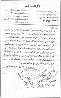 بمحض وصول خبر مصاحبه تيمسار رياست ساواك و اخبار راديو ايران مسئولين سازمانهاى انتظامى بمراقبت نقاط مهم شهر افزودند و پس از شور و تبادل نظر از جهت پيش بينى وسيله شهربانى و قواى تامينى اقدامات احتياطى بعمل آمد شب گذشته اقاى ضيابرى يكى از روحانيون شهر رشت در مسجد كاسه فروشان در مورد وقايع روز مطالبى بيان و از كسبه شهر تقاضا كرد كه تا استخلاص اقاى خمينى از بازكردن بازار تا اين ساعت (9) بازار رشت باز و كاملاً عادى است و دستگاههاى انتظامى و تامينى مراقبت كامل دارند تا از هر نوع تحريكات شديدا جلوگيرى نمايند در شهرها تابعه اين استان اتفاق قابل عرضى رخ نداده است.