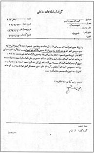 در خاتمه اعلاميه آيتاله خوانسارى و اعلاميه خطابه حسين بن على عليه اسلام كه پيوست ميباشد توزيع گرديد و اعلاميه آيتاله بهبهانى كه نسخه پلى كپى شده آن ضميمه است در دست چاپ ميباشد ـ همچنين آيتاله آشتيانى ـ آيتاله حاج شيخ محمد تقى آملى نيز اعلاميه تهيه كردهاند كه قرار است امروز چاپ و سپس منتشر گردد.
