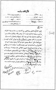آقاى شهابى 18 /3 به ساواك تهران قسمت اخير اطلاع داده شود. 18 /3 /42