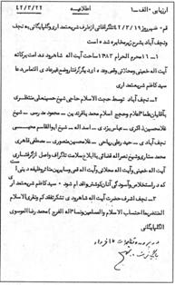 3ـ نجف اشرف حضرت آيتاله شاهرودى تشكر تفقد كم و نقرى الاسلام المنتظر بما احتساب الاسلام والمسلمين و نساءاله الفرج) محمدرضا الموسوى الگلپايگانى.