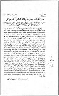 متن تلگراف حضرت آيهاللّه العظمى آقاى ميلانى