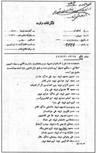 مشخصات 23 نفر را كه باتهام تحريك مردم بتعطيل بازار و دكاكين به وسيله مامورين انتظامى دستگير و تحويل اين سازمان شده و طبق قرار قانونى بازداشت ميباشند بشرح زير است.