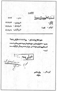 در پرونده آيتاله خمينى بايگانى شود. شهابى