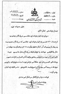 گزارش سرلشگر امیرصادقی در مورد وضعیت بد زندانیان محبوس در پادگان جمشیدیه پس از حادثه 15خرداد