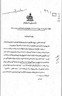تلگراف آیتالله خالصی از سفارت ایران در بغداد به دفتر محمدرضاپهلوی در مورد آزادی زندانیان 15خرداد42 16/4/1342