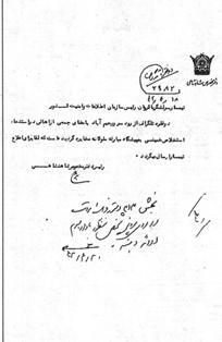دو فقره تلگراف از رودسر و رحيمآباد بامضاى جمعى از اهالى در استدعاى استخلاص خمينى به پيشگاه مبارك ملوكانه مخابره گرديده است كه لذا براى اطلاع تيمسار ارسال ميگردد.