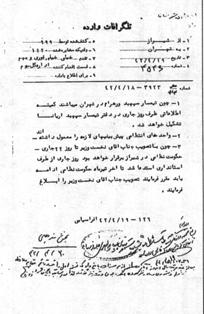 3ـ چون با تصويب جناب آقاى نخست وزير تا روز 22 جارى حكومت نظامى در شيراز برقرار خواهد بود روز جارى از طرف استاندارى استدعا شد تا آخر تيرماه حكومت نظامى ادامه يابد مقرر فرمايند تصويب جناب آقاى نخست وزير را ابلاغ فرمايند.