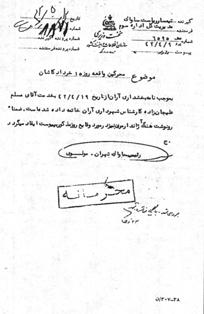 گيرنده : تيمسار رياست ساواك تاريخ : 12 /5 /42