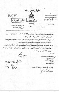 بهرهبردارى شده است. در پرونده تظاهرات 15 خرداد بايگانى شود. شهابى