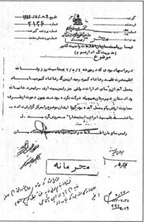 در مراسم يادبودى كه در مورخه 4 /5 /42 بمناسبت روز وفات اعليحضرت فقيد رضا شاه كبير در ميدان بزرگ رضا شاه كبير مهاباد بعمل آمد از رؤساى ادارات دولتى جز رئيس بهدارى ـ رئيش دخانيات و دادستان شهرستان هيچيك شركت نكرده بودند چون دعوت از طرف معاونت ارتش يكم بعمل آمده بود گويا ايشان موضوع را بمركز گزارش داده باشند عليهذا مراتب استحضارا معروض گرديد.
