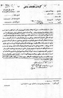 سران بازار كرارا بمقامات مذهبى كه از نقاط مختلف كشور بتهران آمدهاند اعلام داشتهاند دولت ميخواهد براى پيشرفت برنامه خود آيتاله خمينى را بماهان كرمان تعبيد كند و از اگر علماى كشور با اين عمل دولت شديدا مبارزه نكنند مورد اعتراض و نفرت مردم قرار خواهند گرفت. آيتاله عاملى اظهار داشته علماى روحانى بسران بازار اطمينان دادهاند اگر دولت موجبات استخلاص آيتاله خمينى را فراهم نسازد عموم روحانيون بدنبال آيتاله خمينى مبارزه شديدى را با دستگاه حكومت شروع خواهند كرد و تا هر جائى كه لازم باشد اين مبارزه ادامه مىيابد. مقامات روحانى كه از شهرستانها بتهران آمدهاند داراى روحيه جديدى شدهاند آنها گفتهاند ما نميدانستيم مردم تهران تا اين درجه نسبت بروحانيت اظهار احترام مىكنند و همه متوجه شدهايم كه ارتباط روحانيون ايران با خارجىها افسانهاى است كه دولت براى سركوبى روحانيت بوجود آورده است. تبعيد خمينى بكرمان با توجه باعلاميه صادره اخير از طرف دكتر بقائى و روش سياسى و نفوذ بقائى در كرمان صلاح بنظر نميرسد.