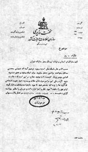 حسبالامر نظر به اينكه ممكن است در مورد ترخيص آيتاللّه خمينى بعضى محافل بخواهند مراسمى بعمل بياورند براى اينكه بيخودى تصور نرود كه باين موضوع زياد اهميت داده ميشود صلاح در اين است كه دخالت نشود اگر در طى اين مراسم حرفهاى خلاف رويه زده شود هويت اشخاصى كه اين حرفها را زدهاند مشخص شود تا مورد بازخواست و تعقيب قرار گيرند اوامر فوق را دقيقا مورد نظر و اجرا قرار داده و جريان را بطور روزانه گزارش دهيد.