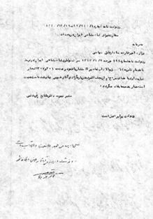 رونوشت نامه شماره 194 مورخه 9 /1 /1343 سركنسولگرى شاهنشاهى ايران در كربلا به انضمام نشريه الاخلاق و الآداب كه اخيرا انتشار يافته و در صفحه 306 و 307 اشعار كنايه دارى به امضاى س. ع. م از نجف اشرف درباره آزادى آقاى خمينى چاپ شده است جهت استحضار بضميمه ايفاد ميگردد.
