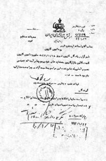 1ـ رياست سازمان اطلاعات و امنيت فارس و بنادر بمنظور اطلاع