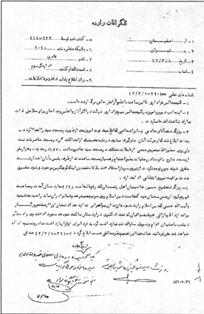 از اين تلگراف يك نسخه در پرونده روحانيون اصفهان ضميمه و اقدام لازم در پرونده مزبور معمول گرديده است.