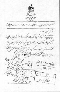ج ـ 19 ـ 6 ـ 5 ـ 30 /2 /43 شب گذشته پنج برگ اعلاميه مذكور در چند نقطه شهرالصاق قبل از آنكه كسى مطلع و قرائت نمايد ساعت 4 صبح مأمورين متوجه و تماما جمعآورى و جهت كشف و دستگيرى مسبب و مرتكب شديدا اقدام نتيجه متعاقبا به عرض خواهد رسيد. سرگرد ذوالقدر