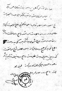 اخلاص مستدعى است مراتب تشكر اينجانب را بحضرات حجج اسلام و علماء اعلام تهران اعلىاله كلمتهم ابلاغ فرموده و تذكر دهيد مطالبى كه در روزنامه اطلاعات سهشنبه راجع به موافقت روحانيون با مقاصد دولت درج شده بود جدا تكذيب فرمايند و علت ابلاغ نمايند كه هيچ روحانى نمىتواند با امور خلاف شرع موافقت كند و پس از اين به مندرجات مطبوعات راجع به روحانيون ترتيب اثر ندهند والسلام عليكم و رحمهاله بركاته