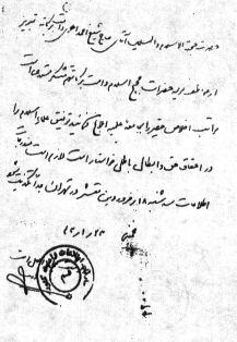 حضرت حجهالاسلام والمسلمين آقاى حاج شيخ احمد اهرى دامت بركاتهتبريز از عواطف كريمه حضرات حجج اسلام دامت بركاتهم متشكر مستدعى است مراتب اخلاص حقير را به جامعه علميه ابلاغ نمايند توفيق علماء اسلام را در احقاق حق و ابطال باطل خواستار است لازم است مندرجات اطلاعات سهشنبه 18 فروردين منتشر در تهران جدا تكذيب شود.