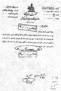 روز 17 /1 /43 عدهاى از بازاريان بعنوان تظاهر به آزادى آقاى خمينى و عزيمت وى به قم پرچمهاى ملى را افراشته بودند چون روز مزبور جنبه ملى و ميهنى و مذهبى نداشت از طريق شهربانى بطور غيرمحسوس به صاحبان دكاكين مزبور تذكر داده شد كه از هرگونه تظاهر خوددارى نمايند.