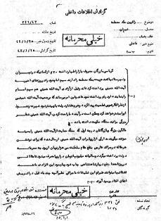 مالكين بزرگ و بازرگانان درجه اول كه سنگ حمايت از آيتاللّه خمينى را به سينه مىزنند مداركى از اروپا براى آيتاللّه خمينى ارسال شده كه براى نوشتن هر مقاله در جرائد خارجى به نفع مقام سلطنت سىهزار تومان از بودجه محرمانه دولت پرداخت ميگردد و ساليانه ميليونها تومان در اروپا مصرف ميشود تا مقالاتى در روزنامهها به نفع دربار شاهنشاهى چاپ شود و با وجود اين افرادى مانند قشقائيها ميتوانند عليرغم اين تبليغات ماجرائى نظير آنچه چند ماه قبل در اتريش اتفاق افتاد بوجود آورند.