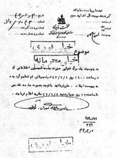 3ـ كليه مأمورين شهربانى قم از ساعت 6 صبح روز 3 /2 /43 در شهربانى آماده خواهند بود.