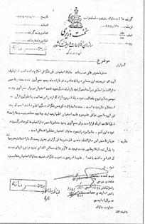 نظريه : جريان تأسيس اين دارالتبليغ چندى قبل مشروحا طى گزارشى بعرض رسيد كه با راهنما مشخص ميباشد و ذيل آن تيمسار قائم مقام پىنوشت فرمودند «اگر برخلاف مصالح اقدامى نشود موضوع تازهاى نيست كه اقدامى داشته باشد». عليهذا در صورت تصويب تلگراف ضميمه بساواك اصفهان مخابره شود.
