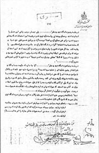 «جلسه بيستم دادگاه بدوى.» من يكبار در دادگاه در يك ربع ساعت محكوم شدم. در دادگاه نظامى. البته باتهام سياسى. من طعم زندان قصر را چشيدم و از اين لحاظ است كه من اين عرايض را بعنوان يادگار براى تنها فرزندم ميگذارم كه بداند منهم بنوبه خودم براى اينكه ايرانى آباد. ايرانى پر از عدل و داد بوجود بياورم فداكارى كردم. من مفهوم اين عرايضم را ميدانم كه بزرگترين قدرتهاى اين مملكت مرا تهديد ميكند. قدرتيكه سعى كرده است با رعب در جامعه بحيات خودش ادامه دهد.........».