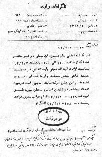 اشخاصى كه مردم را در مجامع عمومى بر ضد امنيت كشور تحريك مىنمايند و مخصوصا اطرافيان روحانيون كه اخيرا دست به تحريكاتى مىزنند با نظر استاندار بلافاصله دستگير و به
