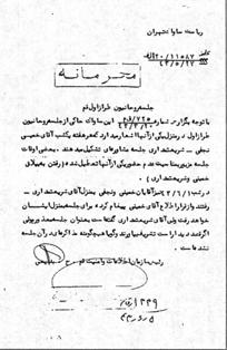 در شب 1 /6 /43 نيز آقايان خمينى و نجفى بمنزل آقاى شريعتمدارى رفتند و از قرار اطلاع آقاى خمينى پيغام كرده براى جلسه بمنزل ايشان خواهد رفت ولى آقاى شريعتمدارى گفته است بعنوان جلسه معذورم ولى اگر قصد ديدار است تشريف بياورند و گويا هيچگونه مذاكرهاى در آن جلسه نشده است.