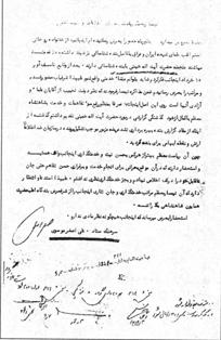 عليهذا استدعا و انتظار دارد كه آن تيمسار معظم مراتب خدمتگذارى و جان نثارى اينجانب را از شرفعرض بندگاه اعليحضرت همايون شاهنشاهى بگذراند.
