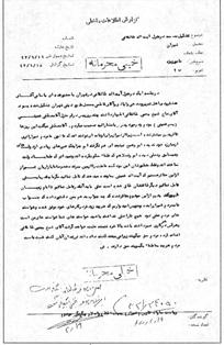 شماره : 24050 /321 تاریخ : 18 /6 /43 موضوع : تشکیل جلسه در منزل آیتاللّه طالقانى در جلسهایکه در منزل آیتاللّه طالقانى در تهران با حضور عدهاى باسامى آقاى هشترودى اهل تبریز و سدهى و ایاذى و آقاى فاطمى محصل علوم دینى تهران تشکیل شده بود آقاى حاج شیخ یحیى طالقانى اظهار داشته چند روز پیش در قم منزل آقا مصطفى خمینى (پسر خمینى) بودم و در مورد پدرش با مشارالیه صحبت میکردم. آقا مصطفى میگفت این روزها تأثر پدرم بیشتر شده است زیرا از شیراز براى او نامهاى نوشتهاند که تاکنون ما مردم شیراز اثرى از مبارزه خود ندیدهایم و هیچ نتیجهاى هم نگرفتهایم جز اینکه ضررهاى زیادى از دولتهاى سابق و فعلى دیدهایم و فعلاً هم که علماء سکوت کردهاند و نمیدانم که علما با دولت ساختهاند و فقط منظورشان این بود که ما ملت را از بین ببرند مخصوصا ما بازاریان شیراز از این متأثر هستیم که آیتاللّه خمینى بما وعده میدهد که تأمل نمائید مگر ما چقدر بایستى تأمل نمائیم دیگر طاقتشان طاق شده است حتى باید آنقدر تأمل نمائیم تا امام زمان ظهور کند پدرم از این موضوع متأثر شده که چه جواب بدهم بمن دستور داده که جواب نامه مردم شیراز را بده و بنویس امیدواریم که هر چه زودتر در کارهاى خود موفق شده و خواستههاى مردم عملى شود هیچ ناراحتى نداشته باشید خواستههاى شما خواستههاى من است و هر کس در هر کارى صبر داشته باشد بالاخره نتیجه مثبت خواهد گرفت آقاى شیخ یحیى طالقانى اضافه کرده مردم حق مىگویند زیرا مىبینند کشته دادهاند فرزندان آنان کشته شده است مردم هر چه به ما علماء بگویند حق دارند. اصل در پرونده طالقانى بایگانى است. این نسخه در پرونده خمینى بایگانى شود.