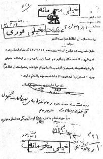 در ساعت 2000 روز 10 /2 /43 تلفونى به آقاى بصرى كارمند نگهبان قم تلفونى اعلام شد. 10 /2 /43